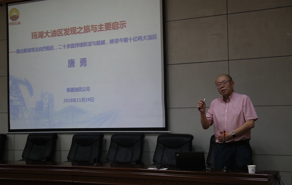 聘任仪式结束后,唐勇教授在雁塔校区第三会议室为beat365官网师生作了《玛湖砾岩大油田发现之旅与主要启示》的精彩学术报告。