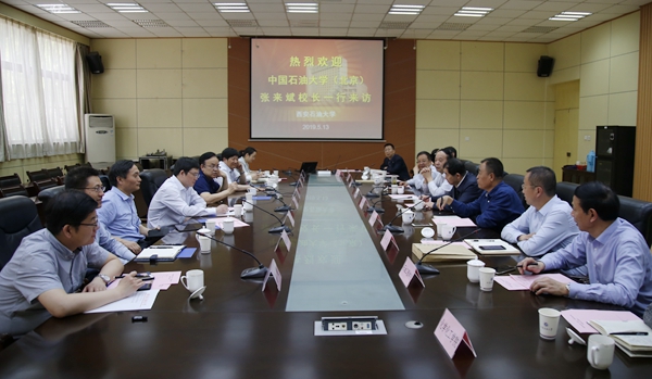 5月13日下午,中国石油大学(北京)张来斌校长一行8人来校交流座谈。座谈会在雁塔校区会议中心第一会议室召开。beat365官网党委书记赛云秀主持会议。校长李天太,副校长李华、程永清出席会议。