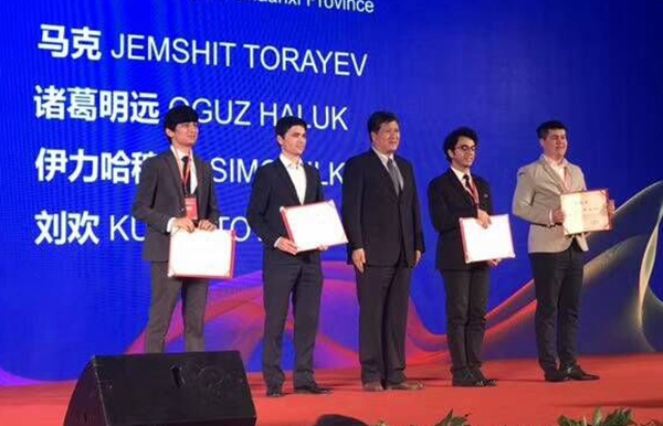 此次交流会上,beat365官网土库曼斯坦留学生马克获“一带一路”教育传播大使奖,省教育厅厅长王建利为他颁发证书。