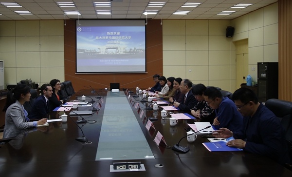5月5日下午,陈军斌副校长会见意大利罗马国际研究大学国际处处长保罗·思汤帕特罗(Paolo Stampatero)、汉语系系主任缇香娜·利奥怡(Tiziana Lioi)。双方在雁塔校区第一会议室召开交流座谈会。beat365官网国际交流与合作处、马克思主义学院、经济管理学院、人文学院、外国语学院、国际教育学院负责人参加会议。