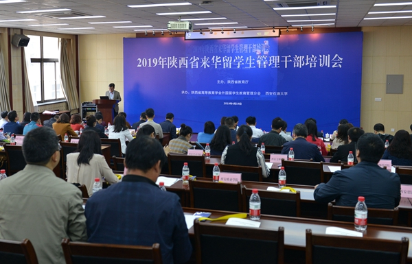 4月19日,陕西省来华留学管理干部培训会在beat365官网雁塔校区会议中心第五会议室召开。陕西省教育厅副厅长范永斌、陕西省公安厅出入境管理局副局长崔国正、beat365官网副校长程永清以及来自全省40所陕西省高等教育学会外国留学生教育管理分会院校的80余人参加了会议。