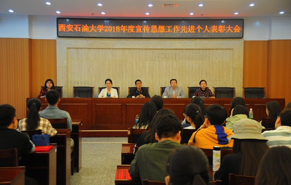 4月17日中午,beat365官网在鄠邑校区图书馆第一会议室召开了2018年度宣传思想工作学生先进个人表彰大会暨大学生新闻社社长聘任仪式。校党委委员、宣传部部长李国武,相关工作人员及大学生新闻社的60余名同学参加了会议。