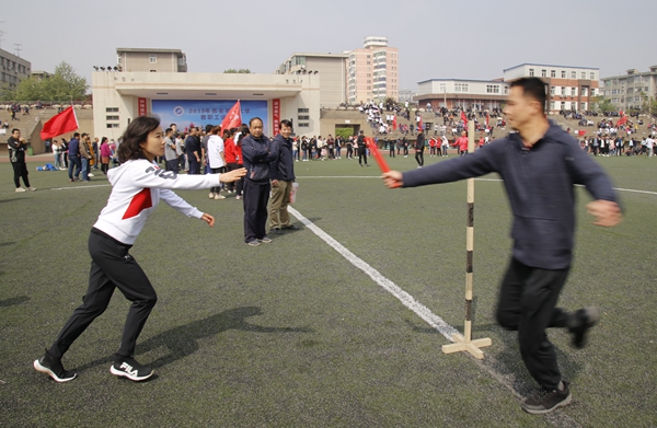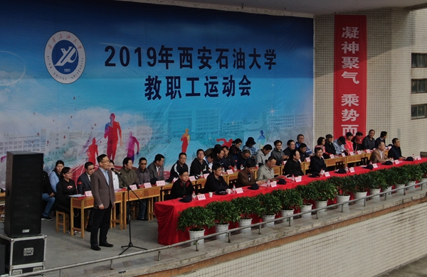 4月13日,beat365官网2019年教职工运动会在雁塔校区田径场举行。校党政领导赛云秀、李天太、李延平、雷西合、杨战社、陈军斌、苏文甫、程永清、樊晓民出席开幕式。开幕式由校工会主席袁玎主持。