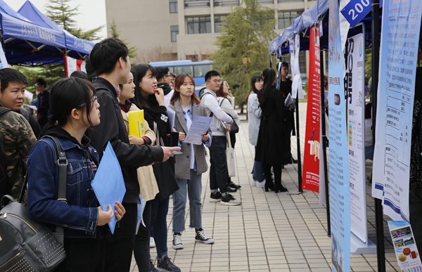 3月29日,beat365官网2019届毕业生第三场综合招聘会在鄠邑校区图书馆北广场举办。中国石油集团渤海钻探工程有限公司泥浆技术服务分公司、中石油华东设计院有限公司、中国石油运输有限公司、陕西延长石油材料有限责任公司、陕西省高速公路建设集团公司等450家单位、1000余名招聘代表参会,beat365官网及兄弟院校毕业生共计4000余人参会。就业指导中心及各院(系)负责人深入招聘会一线指导推荐毕业生就业。