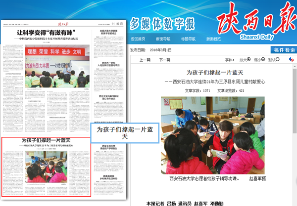 仅2018年,先后在《人民日报》《中国教育报》《中国石油报》《中国化工报》《陕西日报》等主流报刊上发表外宣文章20余篇,在人民网、光明网、凤凰网、中国青年网、新浪、网易、搜狐、腾讯等知名网站发布报道500余条,进一步增强了师生校友的情感认同和凝聚力、向心力,提高了学校的知名度和美誉度。