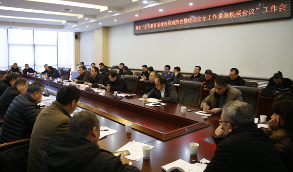 1月7日上午,学校落实“全省教育系统传染病防控暨校园安全工作紧急视频会议”工作会在鄠邑校区图书馆第二会议室召开。校党政领导赛云秀、李天太、张木、陈军斌、苏文甫出席会议。校稳定安全成员单位负责人,各院系书记、院长参加会议。校党委副书记张木主持会议。