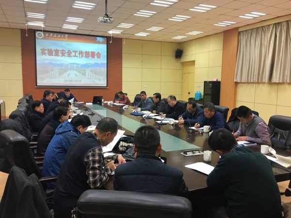会议首先传达了国务院安全生产委员会办公室于1月3日召开的“高等学校实验室安全管理工作视频会议”精神。实验室管理处处长张君涛通报了冬季安全大检查中实验室安全抽查工作的情况,并根据《beat365正版唯一官网关于进一步加强实验室安全工作的通知》文件精神,对近期开展学校实验室安全专项大检查进行了具体安排。保卫处处长杨西坤传达了省委教育工委、省教育厅有关近期校园安全管理的文件精神,并对冬季安全大检查中其他区域安全抽查的情况进行了通报。党政办公室主任何军民对学校2018年“三排查、三落实”工作情况进行了通报和说明。