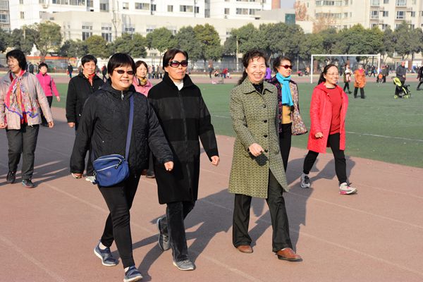 离退休党员健步走活动的比赛规则是:80周岁及以上年龄段的老同志绕田径场一周,限时10分钟以内完成。70至79周岁的老同志男、女分组,绕田径场两周,在15分钟以内完成。70周岁以下的老同志男、女分组,绕田径场三周,在20分钟内完成。尽管很多老同志年事已高,腿脚也不是很灵活,有些还拄着拐杖,但是大家精神抖擞,一路上有说有笑,三三两两结伴而行,向着终点努力进发。