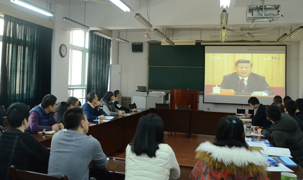 在雁塔校区学术报告厅,校党委理论中心组举行扩大学习会,中心组成员和机关全体干部200余人收看了大会直播;在雁塔校区第三会议室,研究生院组织了100余名研究生集中收看;在鄠邑校区就业指导中心大厅,全体学工干部及学生代表200余人一起收看。学校其他部门、院系也通过电视直播、网络直播等各种形式,自行组织了集中收看。