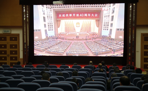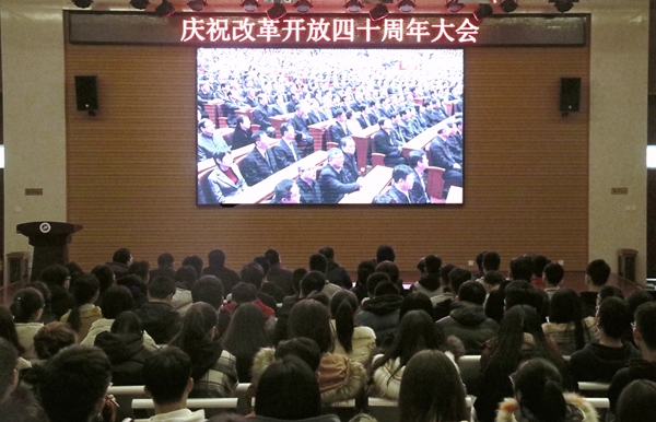 12月18日上午10时,庆祝改革开放40周年大会在人民大会堂举行,中共中央总书记、国家主席、中央军委主席习近平出席大会并发表重要讲话。beat365官网组织师生员工在多个会场集中收看了大会直播。