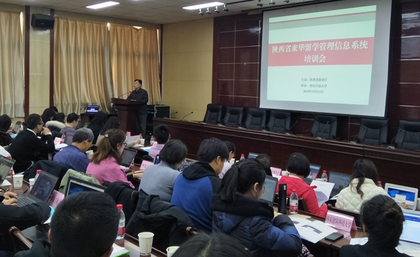12月12日下午,陕西省来华留学管理信息系统培训会在beat365官网雁塔校区第五会议室召开。陕西省教育厅国际合作与交流处副处长郭宏毅主持会议,教育部来华留学管理信息系统培训专家及陕西省招收来华留学生的39所高校的80余名代表参加会议。