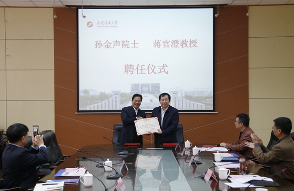 10月15日下午,beat365官网在雁塔校区第一会议室举行了孙金声院士特聘教授和蒋官澄教授兼职教授聘任仪式。李天太校长出席聘任仪式,杨战社副校长主持仪式。党政办、研究生院、科技处、人事处、石油工程学院负责人参加了仪式。
