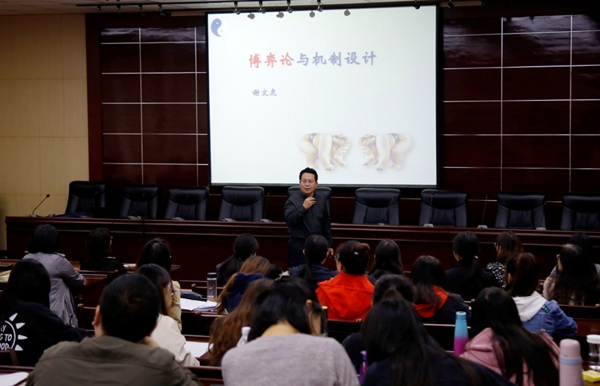 报告会由经济管理学院院长王君萍主持,全校100余名师生到场聆听了报告。谢文虎教授从“和尚分粥博弈”“矿难博弈”“猎人博弈”三个经典的博弈案例入手,向师生阐述了博弈论的基本概念,详细讲解了“纳什均衡”“帕累托效率”“帕累托最优”等经济学概念,并从“通俗易懂平话博弈论”“深入浅出解读博弈论”“致力实践运用博弈论”三个方面,全面介绍了博弈论与机制设计理论的内在逻辑关系。谢教授结合多年丰富的工作经验和渊博的知识,对“机制设计与管理实践”提出了独到的见解,语言平实风趣,案例生动丰富,受到了师生们的广泛好评。