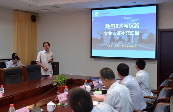 电子工程学院测控技术与仪器专业负责人仵杰老师对该专业的自评情况作了补充汇报。汇报结束后,专家组针对专业认证自评报告内容进行了质询。