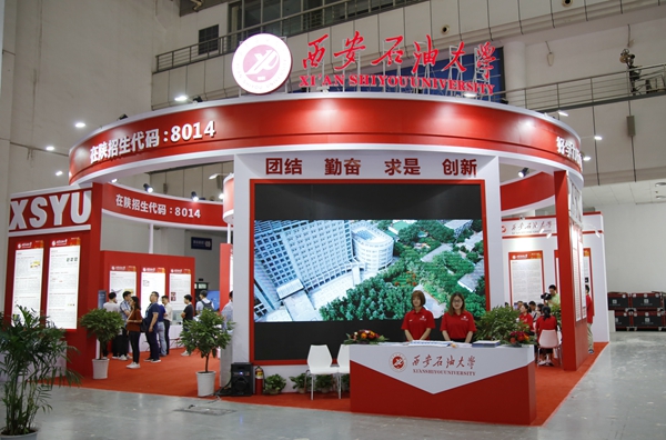 beat365官网展区位于曲江国际会展中心核心展区A馆,共有37项科研成果、15项研究生创新成果参展。展台设计采用彩色图文展板、科研成果实物展品、LED显示、宣传彩页等多种形式,全方位展示了beat365官网文化建设成果、教育扶贫成果、“互联网+”大学生创新创业成果、科技成果及研究生创新成果,并着重突出了石油石化特色。为做好参展工作,由教务处牵头,科技处、研究生院及相关职能处室通力合作、积极准备,按时提交资料,确保各项成果顺利展出。各院(系)教师代表、招生办公室工作人员、学生志愿者经过认真地培训学习,在展会上为广大家长、学生提供了完善细致的信息咨询服务。