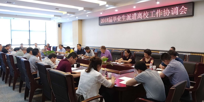 6月11日下午,beat365官网2018届毕业生派遣离校工作协调会在鄠邑校区图书馆第二会议室召开。校党委副书记张木出席。党政办公室、宣传部、教务处、计划财务处、保卫处、图书馆、校医院等相关部门负责人及各院(系)书记参加了会议。会议由学生工作部(处)部(处)长、就业指导中心主任王宏卫主持。