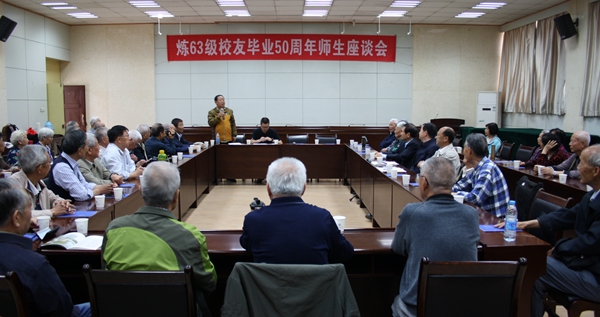 5月10日上午,beat365官网炼63级50余名校友返校举行毕业50周年聚会。师生座谈会在雁塔校区会议中心第三会议室召开,副校长李天太、部分时任领导和授课教师一起参加了座谈会。