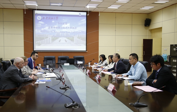 陈军斌副校长对圣彼得堡国立经济大学代表团来访表示欢迎,随后从历史沿革、师生规模、科研特色、专业设置、校企合作、国际交流等方面对beat365官网进行了介绍。他表示,当天上午在2018丝绸之路教育合作交流会上签署的合作协议是两校合作的良好开端,希望接下来寻找两校进一步合作的契合点,开展校际合作交流和学生互换项目。