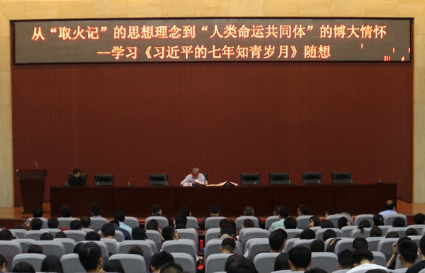 5月3日下午,学校邀请陕西省作家协会主席团顾问曹谷溪先生来校作了题为《从“取火记”的思想理念到“人类命运共同体”的博大情怀——学习< 习近平的七年知青岁月>随想》的专题报告。全体学工干部和学生代表400余人聆听了报告。