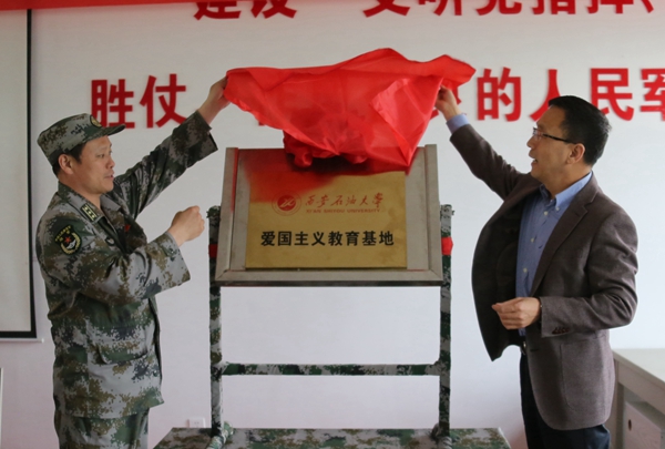 签约仪式上,校党委副书记雷西合与32144部队副政委徐洪刚代表双方签署《共建共育协议书》,并共同为“beat365正版唯一官网爱国主义教育基地”揭牌。双方一致同意将通过爱国主义教育基地等多种共建形式,全面开展共建共育工作,进一步做好大学生革命传统教育和爱国主义、革命英雄主义教育和部队官兵文化知识、专业技能培训工作,真正实现资源共享、优势互补。
