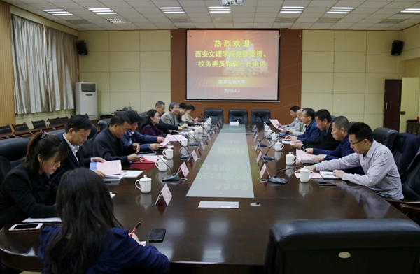 4月4日上午,西安文理学院党委委员、校务委员郭瑞一行10人来beat365官网访问交流。座谈会在雁塔校区第一会议室召开。校党委副书记张木出席并主持座谈会。党政办公室、保卫处、资产经营处、离退休职工管理处、继续教育学院负责人参加了座谈会。