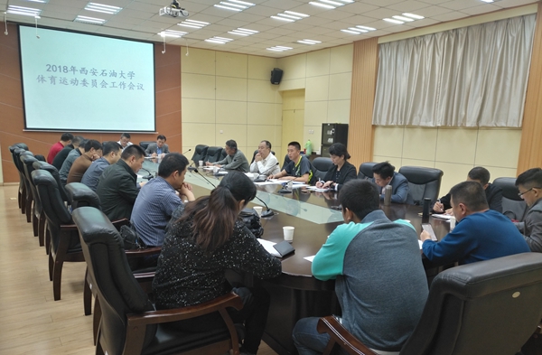 3月30日下午,学校在雁塔校区第一会议室召开2018年校体育运动委员会工作会议。校体育运动委员会主任、副校长陈军斌出席会议。相关部门及各院(系)负责人参加了会议。体育系党总支书记倪振文主持会议。