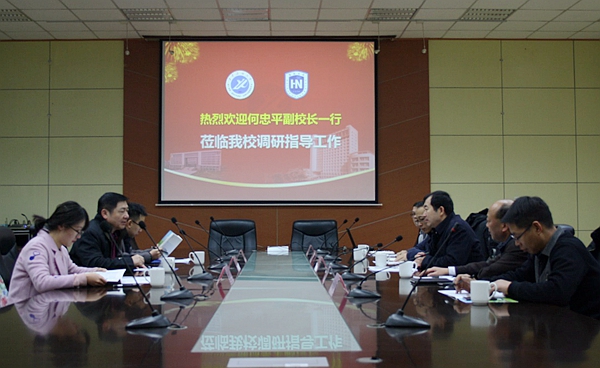 12月14日下午,海南大学副校长何忠平一行3人来beat365官网交流座谈,主要就理事会与教育基金会工作进行了调研。座谈会在雁塔校区第一会议室召开。beat365官网副校长李天太出席座谈会。座谈会由合作发展处处长蔡上游主持。