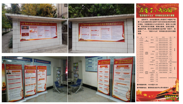 ——及时设立党的十九大宣传展板。10月20日,研究生院利用雁塔校区二号研究生公寓前宣传栏、二号教学楼9层大厅宣传展位,集中制作并设立党的十九大精神专题宣传展板7处,进一步营造学习氛围,激发学习热情。
