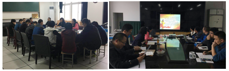 ——及时开展中心组学习。10月18日下午、11月1日上午,研究生院党委中心组扩大学习会先后在雁塔校区2号教学楼904会议室召开,在党委书记高荣芳的带领下,全院教职工对党的十九大精神进行了集中学习,并结合实际展开深入讨论,努力将党的十九大提出的新思想、新理念、新战略转化为推动研究生教育工作发展的具体措施。