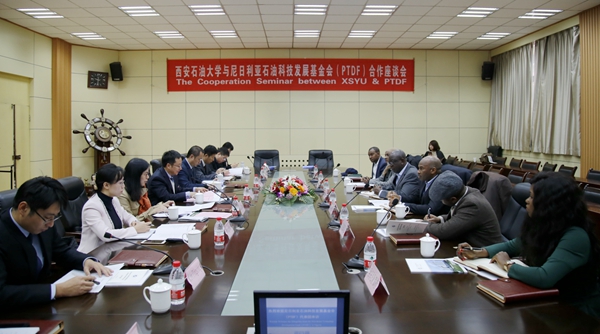 11月1日上午,尼日利亚石油科技发展基金会(PTDF)执行秘书长贝鲁·谷索(Bello Gusau)先生等一行6人来校访问,双方合作座谈会在雁塔校区会议中心第一会议室召开。校长屈展会见代表团一行,副校长李华出席座谈会。科技处、国际交流与合作处、研究生院、国际教育学院有关负责人参加会议。