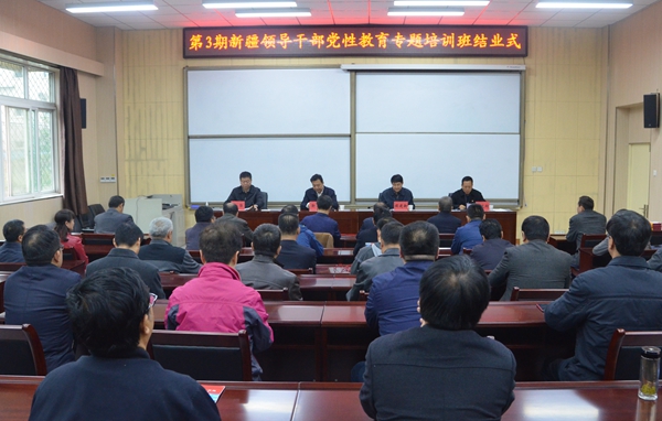 10月31日上午,由中国延安干部学院主办的“第3期新疆领导干部党性教育专题培训班”在beat365官网明德校区培训中心顺利结业。中国延安干部学院副院长靳铭出席并讲话。中国延安干部学院培训部学员二处处长杨文翔主持结业式。38名来自全疆党政机关的厅、处级领导干部学员参加结业式。