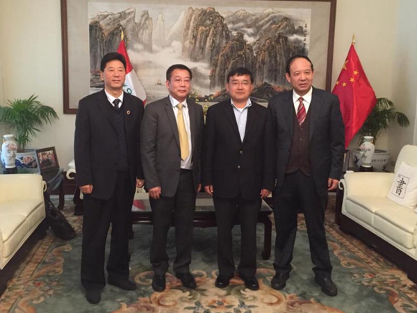 中国驻秘鲁大使贾桂德与代表团领导合影