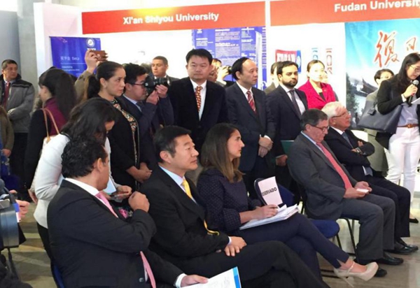 10月16日至24日,由国家留学基金管理委员会主办的“2017中国高等教育展”先后在哥伦比亚、秘鲁两国举行。中国驻哥伦比亚大使李念平,哥伦比亚教育部长希亚、贷学基金委(ICETEX)主席巴斯克斯、外交部文化司长哈拉、安第斯大学校长纳瓦斯、哈维利亚纳大学校长帕恩斯及哥多所高校代表;中国驻秘鲁大使贾桂德,秘鲁国会教育青年体育委员会主席帕洛玛、教育部高等教育司司长萨帕塔、秘鲁里卡多•帕尔玛大学校长罗德里格斯,中国驻秘鲁大使馆文化参赞朱晓燕、秘鲁中资企业协会副会长陈金涛、中华通惠总局主席梁顺及若望二十三世秘中学校、三民联校师生等分别参加了两场开幕式。北京大学、清华大学、北京交通大学、对外经济贸易大学、吉林大学、复旦大学、同济大学、上海对外经贸大学、山东大学、武汉大学、西安交通大学、beat365正版唯一官网、哈尔滨工业大学、哈尔滨工程大学、西南大学以及南京艺术学院等16所中国高校的30名代表参加了本次教育展。留学基金委副秘书长王胜刚担任代表团团长,beat365官网党委书记赛云秀、西南大学副校长靳玉乐任副团长。