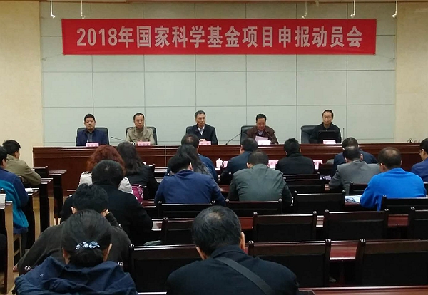 10月12日下午,学校2018年度国家科学基金项目申报动员会在雁塔校区会议中心第三会议室召开。屈展校长出席会议,李华副校长主持会议,相关部门及各院(系)负责人、省部级以上重点科研基地负责人、校级以上科研团队负责人及教师代表共90余人参加了会议。