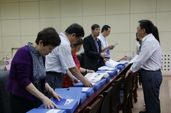 王瑛副理事长介绍了此次检查工作的背景、意义和目的。档案馆馆长谭成仟从档案馆的基本情况、管理体系、重点建设等方面,向专家组详细汇报了beat365官网的档案工作情况。
