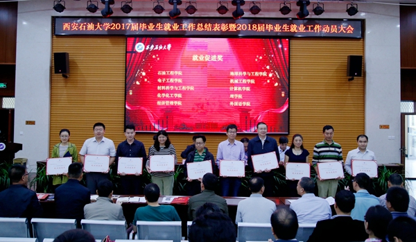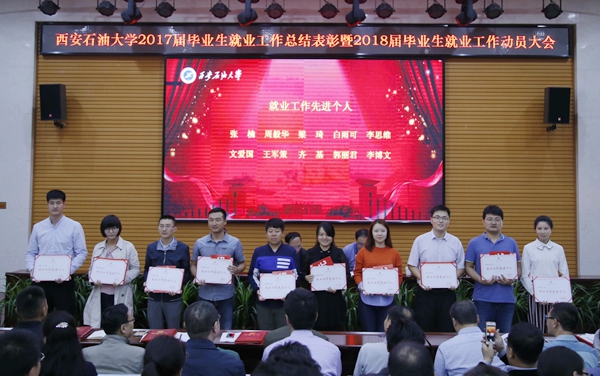 副校长杨战社宣读了关于2017届毕业生就业工作先进集体和先进个人的表彰决定。与会领导为7项集体奖获奖单位和15名先进个人颁奖。