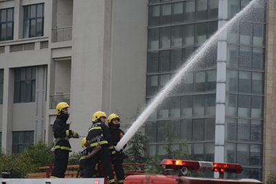 本次演练科目分为火灾预警、人员紧急疏散、伤员救治和灭火扑救等课目,采用燃放烟雾、模拟真实火灾状况、医疗救治、消防队员扑救、学生实地参观消防救援车辆内部结构等形式开展。beat365官网大学生安全服务志愿者协会的同学们还为新生进行了快速穿戴防火服、连接水龙带、紧急灭火等科目的表演。举办此次活动使广大新生掌握了火灾逃生疏散避险的技能以及灭火器的使用方法,培养了同学们应对自然灾害及公共突发事件的应急处置能力和自救互救本领。
