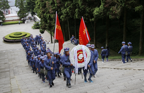 在井冈山烈士陵园,学员们走进青松环抱、鲜花盛开的纪念大厅,在毛泽东同志书写的“死难烈士万岁”的巨幅牌匾前,大家怀着崇敬的心情向长眠在此的英烈们敬献了花圈。