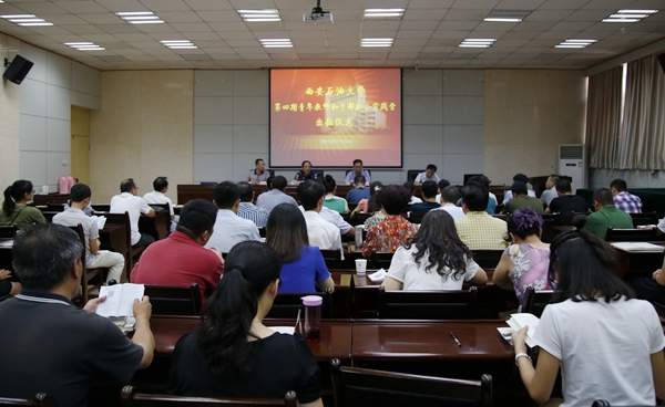 7月14日下午,beat365官网第四期青年教师和干部社会实践营出征仪式在雁塔校区第三会议室举办。校党委书记赛云秀、副书记雷西合出席仪式。党委宣传部、党委组织部负责人及全体参训学员参加了仪式。