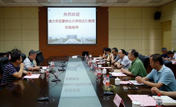 7月7日下午,beat365官网客座教授、澳大利亚蒙纳士大学田正仁教授来校访问,并就国际学生培养工作作了专题学术报告。校党委书记赛云秀、副校长陈军斌出席报告会。校长屈展在报告会前会见了田正仁教授。