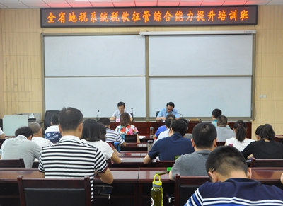 6月26日上午,全省地税系统税收征管综合能力提升培训班在beat365官网明德校区培训中心开班。校党委副书记张木出席开班仪式并致辞。省地税局征科处处长樊迎革主持开班仪式。全省各地市地税系统征管科长、纳服科长及业务骨干共58人参加开班仪式。