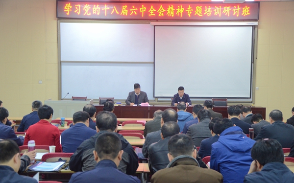 3月27日上午,省教育厅在beat365官网南校区继续教育学院举行“学习党的十八届六中全会精神专题培训研讨暨基层党组织书记培训班”开班式。省教育厅党组书记、厅长王建利出席并作动员讲话。省教育厅党组成员、副厅长高晶华主持开班式。