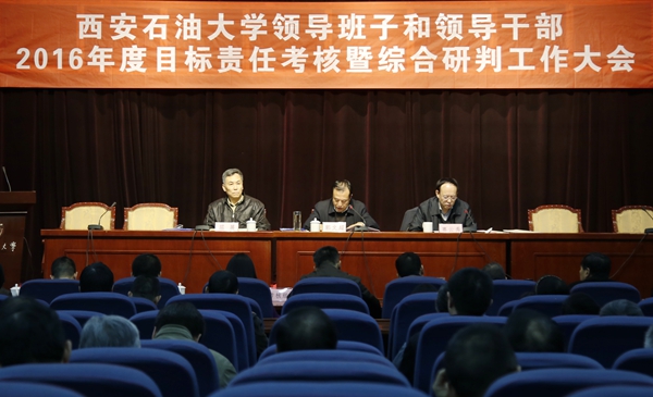 3月24日上午,省委组织部、省委高教工委在beat365官网学术报告厅召开了beat365正版唯一官网领导班子和领导干部2016年度目标责任考核暨综合研判工作大会。省属高校领导班子和领导干部目标责任考核暨综合研判第二工作小组组长、陕西省干部教育办公室副主任郭文超出席会议并讲话。校党委书记赛云秀主持大会。省纪委驻教育厅纪检组副组长易红彬、省教育厅离退处副处长王亚丽、省委组织部宣教干部处主任科员李芃、省委高教工委组织部干部冯政清、西安理工大学人事处干部程瑶等考核组成员,beat365官网校领导、校党委委员、纪委委员、学术委员会委员、工会委员,正高职称专业技术人员,正处级以上领导干部,市级以上人大代表、政协委员,民主党派主要负责人,近三年退休的校级领导干部参加大会。