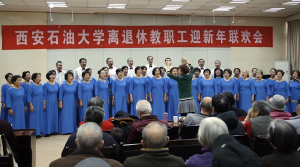 联欢会在老年大学乡音合唱团带来的大合唱《鸿雁》中拉开序幕。门球之家的老同志们表演的快板诗《我们的中国梦》,表达了离退休老同志对党的深厚感情;老年大学广场舞分会带来的舞蹈《江南谣》、老年大学离退休舞蹈队带来的秧歌《胶州情怀》、女声小合唱《半个月亮爬上来》、老年合唱队合唱的《映山红》《唱得幸福落满坡》等节目,充分展示了老年大学的教学成果和老同志热爱生活的精神面貌;电吹管独奏《乡音乡情》《走过咖啡屋》,男声二重唱《嗄达梅林》,展示了离退休教职工的多才多艺。大家在一片欢声笑语中共同迎接2017年的到来。