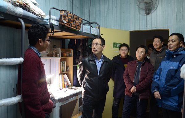 12月30日晚,校党委副书记雷西合深入新校区学生宿舍,看望慰问了广大学生。学生工作部、各院(部、系)相关负责人陪同。