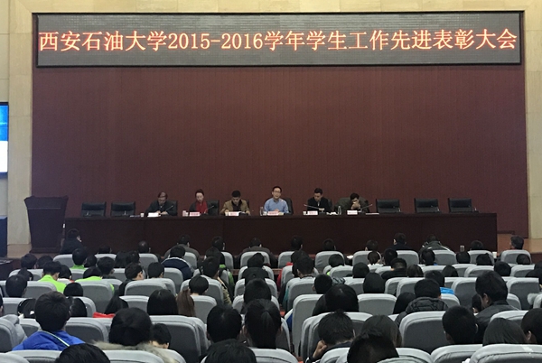 12月30日下午,beat365官网2015-2016学年学生工作先进表彰大会在新校区图书馆弘石学术报告厅举行。校党委副书记雷西合出席大会。学生工作部、校团委、教务处、新校区管委会综合办等职能部门负责人、全体学生工作干部及学生代表400余人参加了大会。