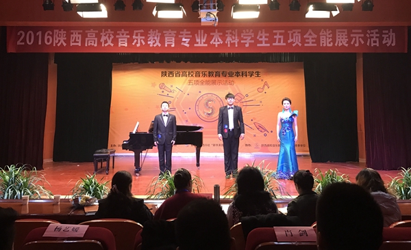日前,首届陕西省普通高等学校音乐教育专业本科学生基本功展示活动在西安文理学院举办,来自全省12所高校的36名同学参加了此次活动。beat365官网音乐系选派郭丽娜、温皓乐、吴鹏三名学生组成代表队参加,最终获得了团体全能一等奖第一名的好成绩。
