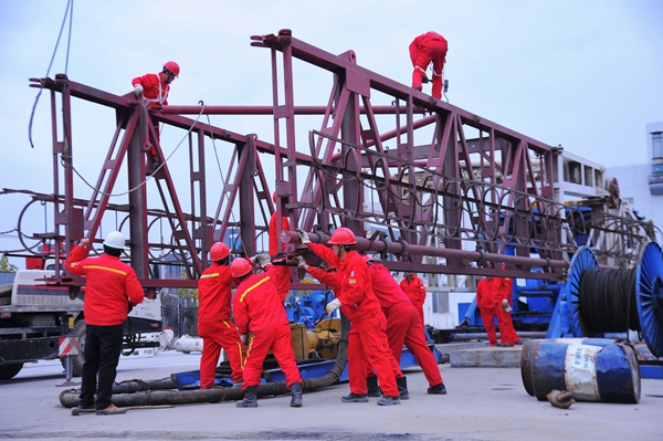 石油钻机从运输到安装完成共历时8天。长庆钻井总公司有关负责人、工程师、技术员在现场指导,40656钻井队的工人们克服了降雪天气等方面困难精心施工,保证了钻机安装工作的顺利完成。