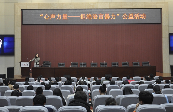 11月17日晚,由陕西广播电视台896汽车调频《长安夜话》节目发起,团省委青少年权益维护中心、陕西省律师协会共同支持的“心声力量——拒绝语言暴力”公益活动在beat365官网新校区举办。知名主播晓辉、马小路、马大帅担任主讲嘉宾,此次活动由校团委承办。