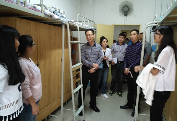 在检查过程中,雷西合副书记要求学工部、后勤处和各院(系)要以“两学一做”学习教育为契机,进一步深化“以生为本”工作理念,强化服务育人和制度管理工作,全面推进和谐公寓、文明宿舍建设,确保为学生提供安全舒适的住宿环境,努力形成全体师生共建、共享美好和谐校园的良好局面。